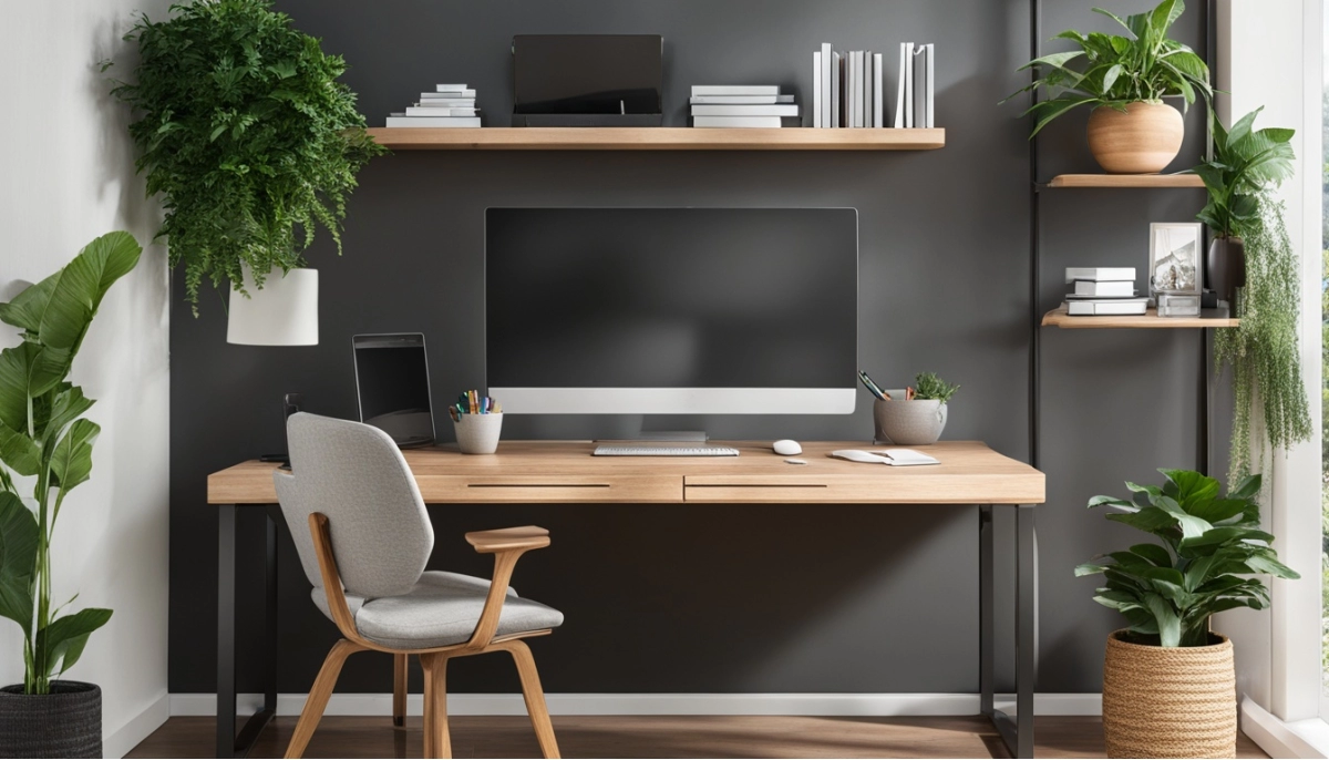 To promote better posture and overall health, consider incorporating a standing desk into your home office setup. Standing desks allow you to alternate between sitting and standing, reducing the time spent in a sedentary position. This movement promotes blood circulation, improves focus, and may increase productivity.